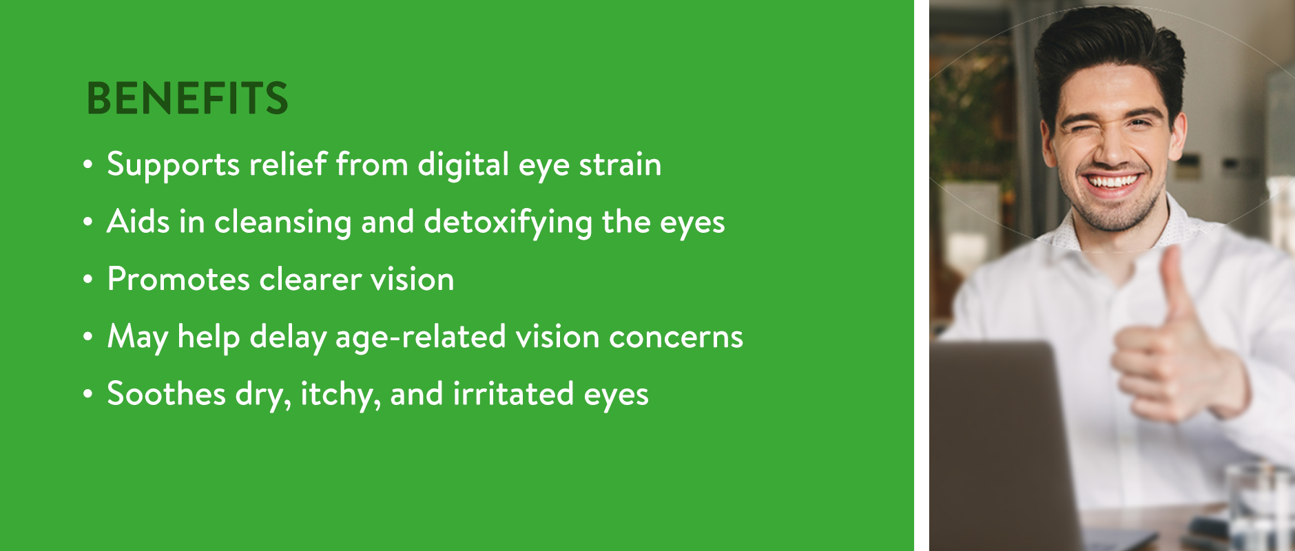 tired or irritated eyes caused by the effects of screen time and environmental stressors.