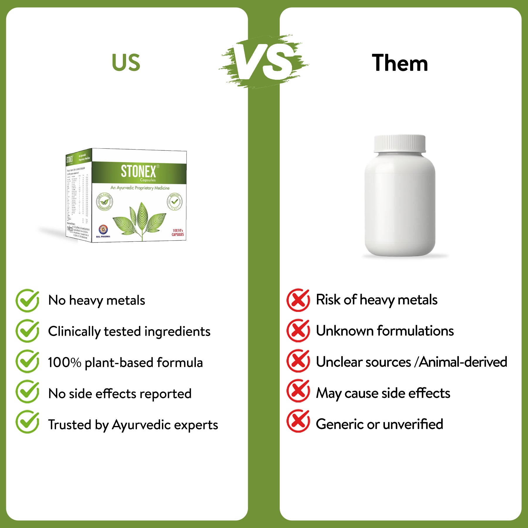Stonex Capsules are made from natural Ayurvedic ingredients and are generally well-tolerated. However, it is advisable to consult a healthcare provider before use, especially if you are pregnant, nursing, or have any existing medical conditions.