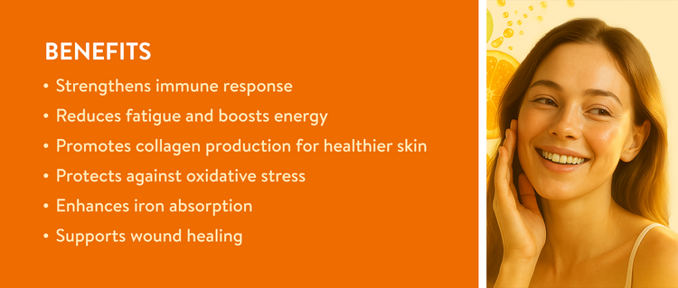Vitamin C is a powerful antioxidant that helps boost immune function, supports skin health, and reduces oxidative stress. Zinc, on the other hand, is vital for immune cell function, wound healing, and cell growth. Together, they work synergistically to enhance the body's defense mechanisms.