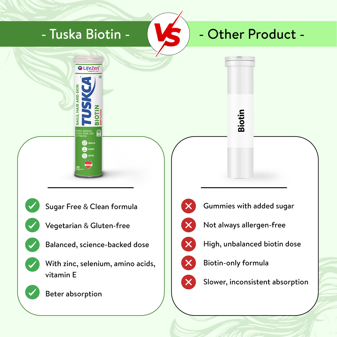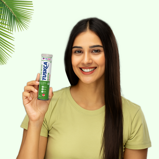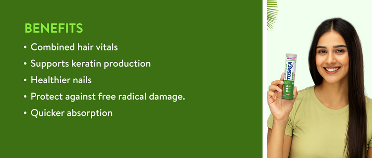 Biotin is believed to improve hair health by stimulating growth and preventing hair thinning. Generally, biotin supplements are advised for people going through hair fall issues or hair transplants.
