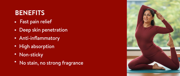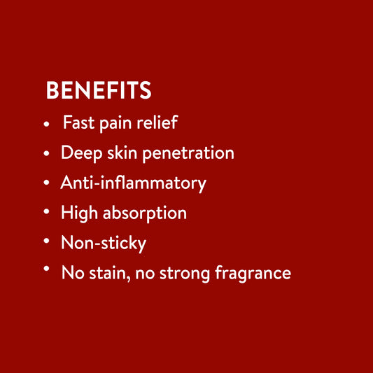 The ingredients in this gel help to relieve musculoskeletal pains. It also works locally at the body part where applied, unlike the normal painkiller medicine, which works on the whole body. The active ingredients penetrate deeply into the skin and thus help in giving relief from pain.