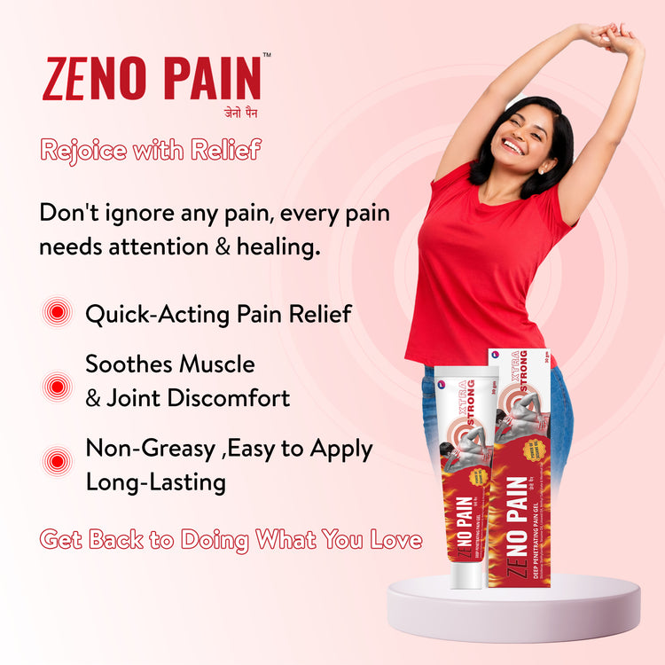 Zeno Pain is an analgesic gel used for muscle strains, neck pain, backache, sports injuries, joint pain or arthritis and other conditions. It contains diclofenac, methyl salicylate, menthol, sesame & linseed oil as active ingredients. Zeno Pain Gel works by decreasing the prostaglandin synthesis, reducing pain and delayed onset muscle soreness.